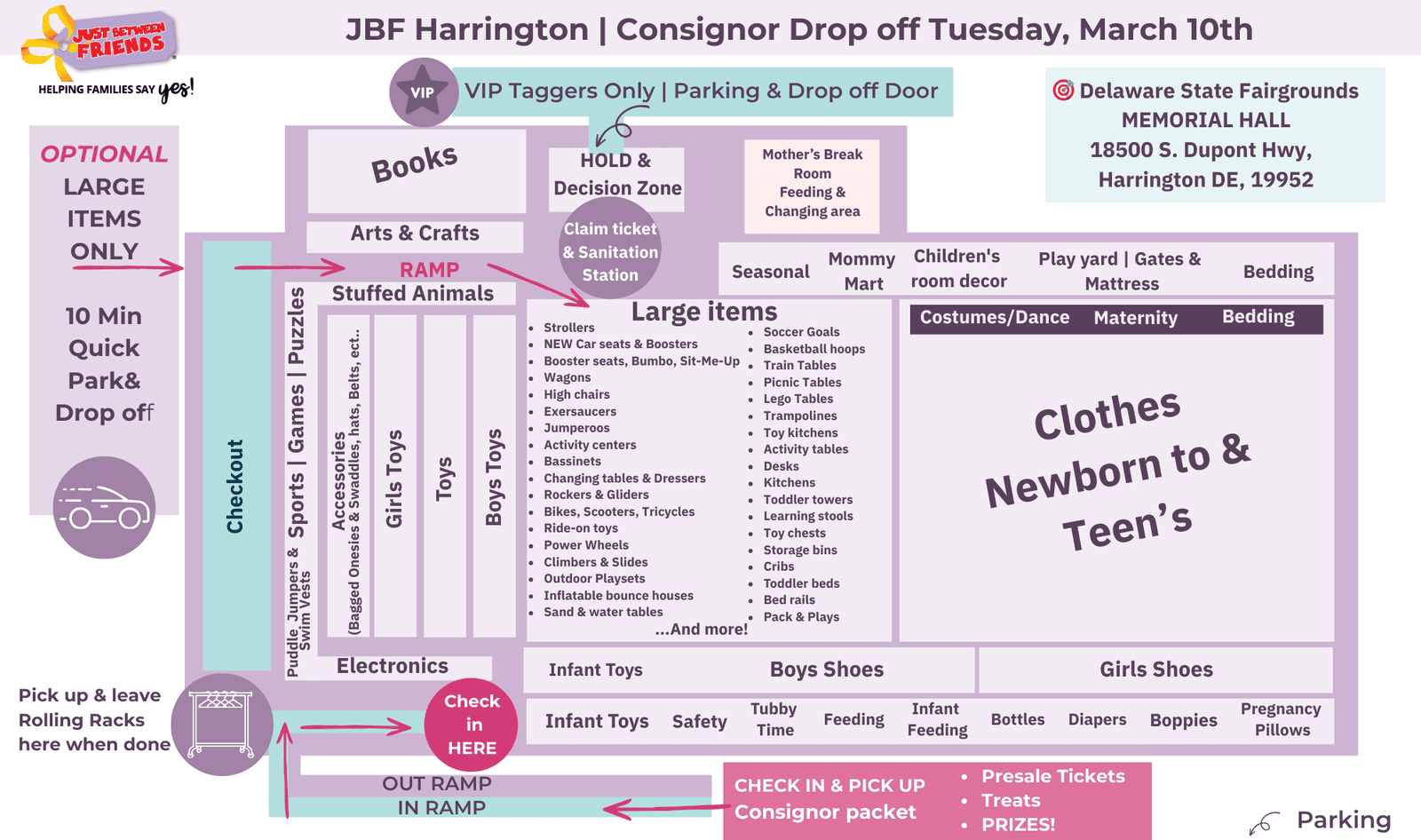 We host 4 sales per year, that's 2 each season in Harrington and in Dover/Middletown.