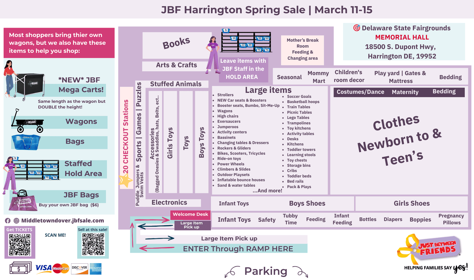 There are special Early Bird shopping hours for which we offer tickets each sale. Those who want the best selection at the lowest prices find it worth the ticket price to get to shop even earlier. We also offer presales, too. You might qualify for one of these early shopping times. And, if you SELL with us, you also get to shop early! Find out more on the Sell Page HERE.